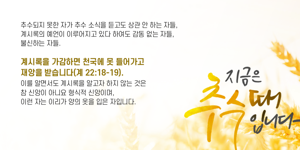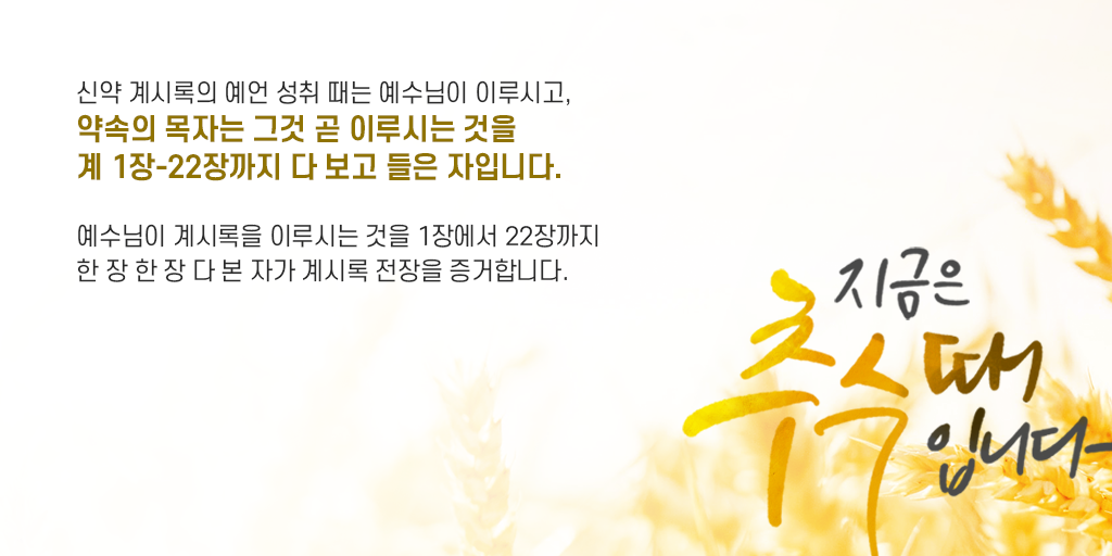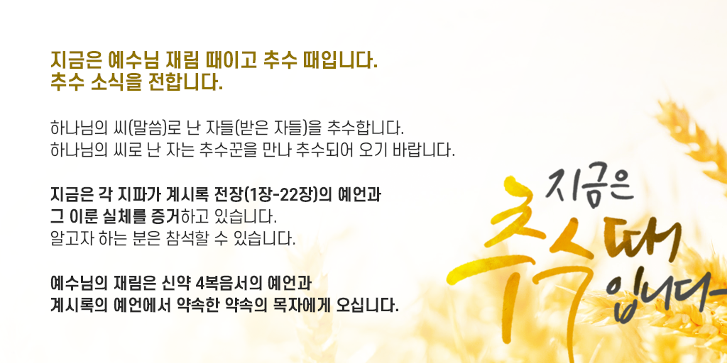 지금이 바로 성경에서 약속한 '추수 때'이기 때문입니다.