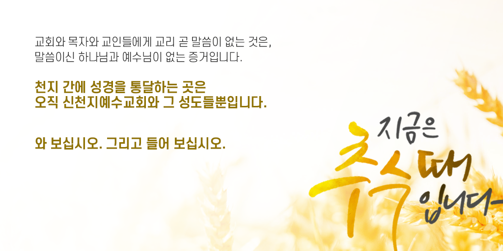 신천지예수교회에서 지금은 추수때라고 증거하는 것은