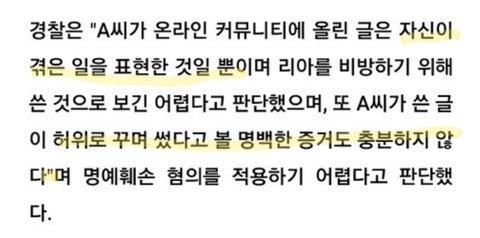 자신의 겪은 일을 표현한 것일 뿐 리아를 비방하기 위해서 쓴 글로 보기 어렵다