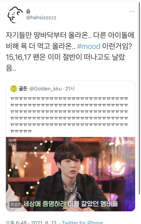 방탄 15 16 17 시절 영상에 몰려온 인간들 당시 조카 깠었다고 광고하고 있음ㅜㅠㅠㅠ