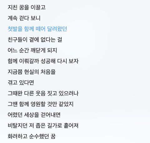 첫발을 함께 떼어 달려왔던 친구들이 곁에 없다는 걸 어느순간 깨닫게 되지