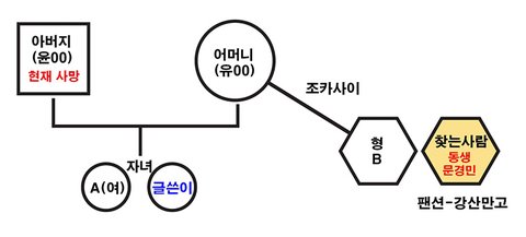 찾는사람은 어머니의 사촌조카입니다. (찾는사람 = 문경민)