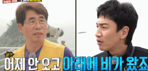 이광수가 어제 비 왔냐고 물어보면서 나온 대화