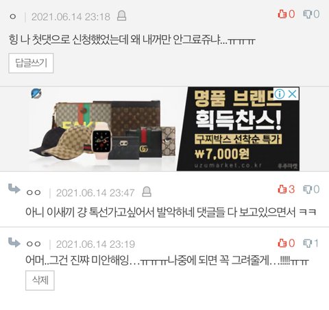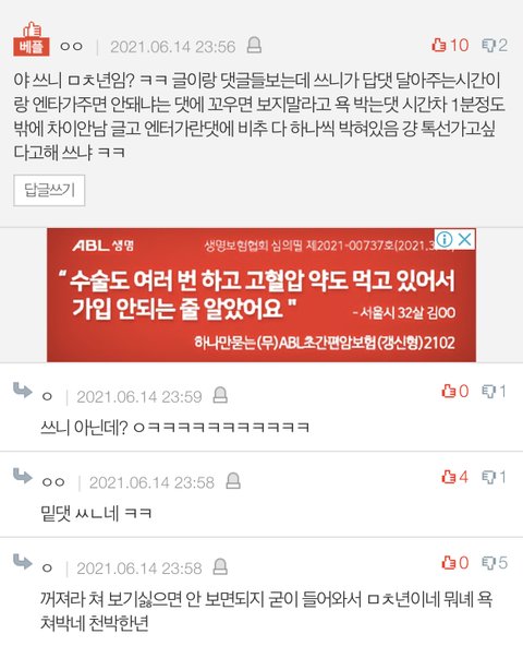어제 내 톡선 간 글에 욕 달린 이후로