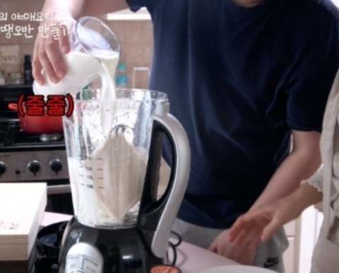 믹서기에 두부 넣고~ 우유 넣고~