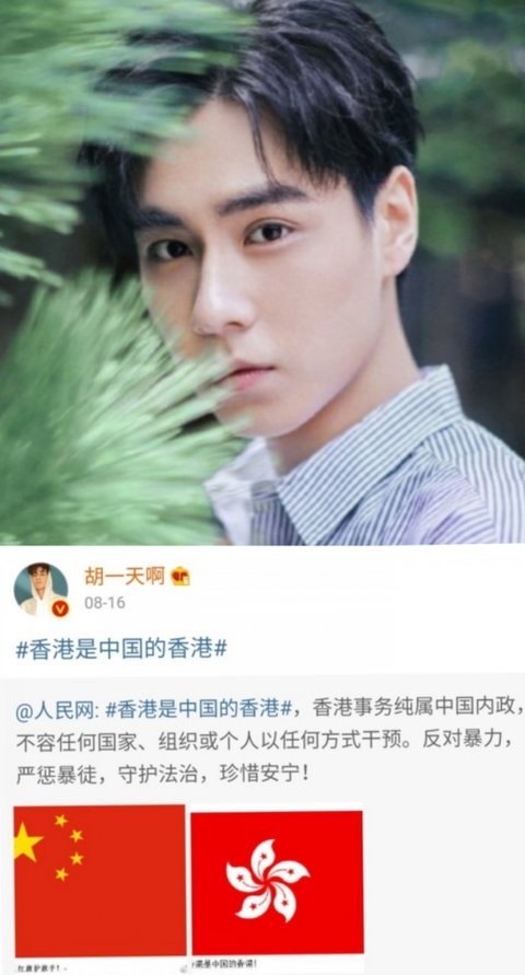 = 남중국해, 홍콩경찰 지지, 오성홍기, 여혐, 혐한작품 남주로 출연(치아문 극중이름 장천)
