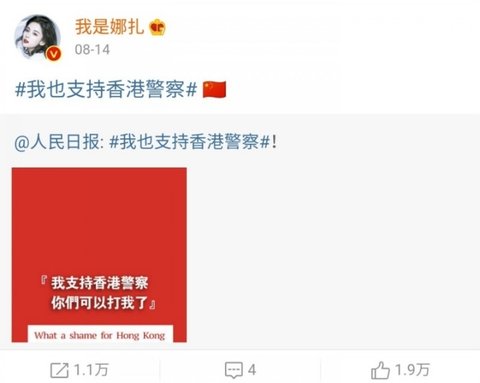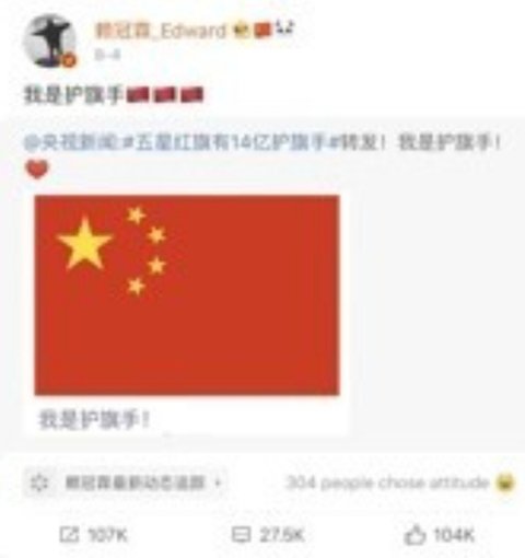 오성홍기, 홍콩경찰지지, 남중국해, 혐한작품(치아문) 주연