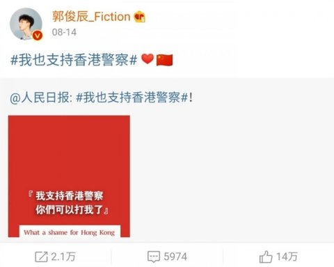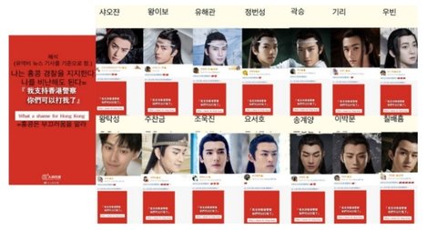 중국 연예인들 병크목록 + 불매해야할 출연작품 (홍콩경찰지지,항미원조,남중국해 등등)