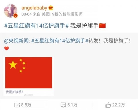 = 오성홍기, 홍콩경찰지지, 남중국해, 동북공정 드라마 주연(삼생삼세)