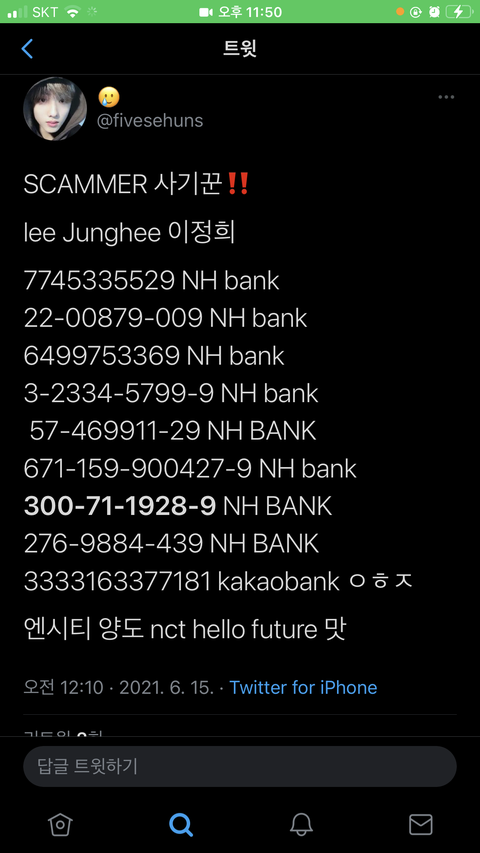 입금은 저번주 수요일에 했고 일괄 월욜에 배송한다길래 기다렸는데 아무 연락이 없는거임 그래서 어제 디엠했는데 사정이 있어서 화욜에 보내겠다는거임 근데 지금도 연락없길래 계좌 서치했는데 어떡함 ㅜㅜㅜ 어떡해야해 ㅠㅠㅠ