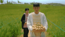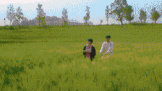 나란히 청보리밭을 걷는 해강이와 세윤이