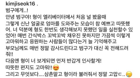 방송 후, 그 아이에게서 편지 받은 김지석