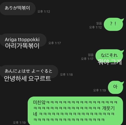 헬로톡에서 만나서 한달정도 연락하고있는데 내가 안녕하세요구르트 알려줬단 말이야 그런데 혼자서 아리가똑볶이라고 말함 ㅜㅜ 진짜 귀엽지 않니ㅜ 똑똑한거같음 맨날 전화하는데 진짜 ㅈㄴ웃김