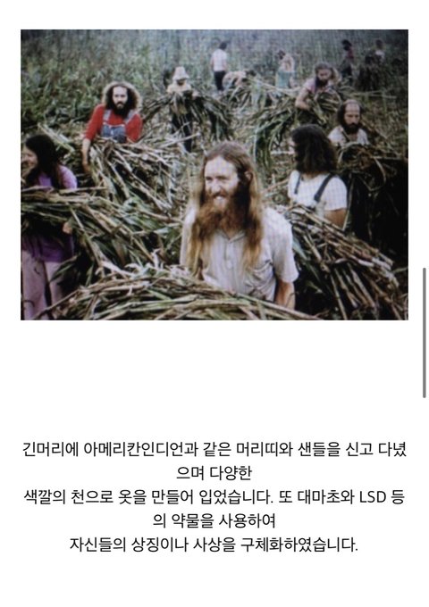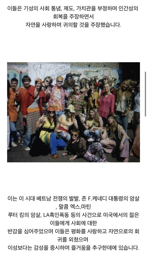 그냥 애들 컨셉 히피인거 보고 아무생각 없이 히피족 역사 쳐봤는데 너무 헬로퓨천데