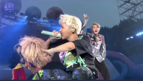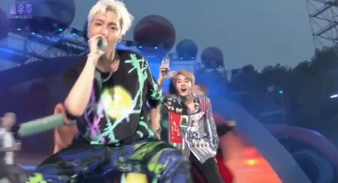 아무것도 모른채 열창하는 제이호프 뒤로