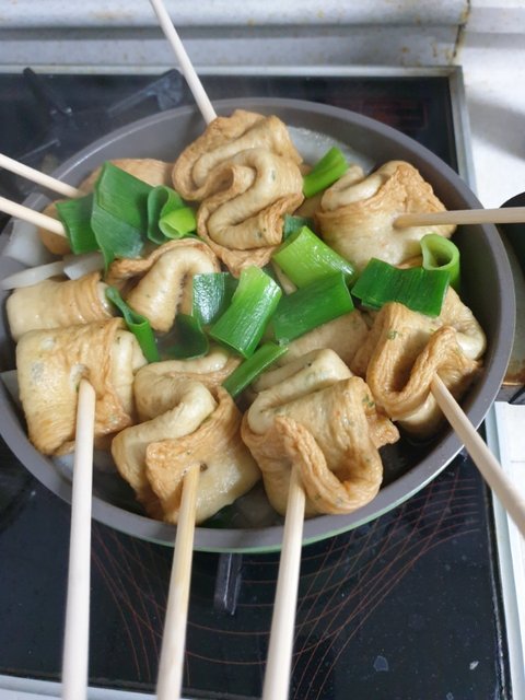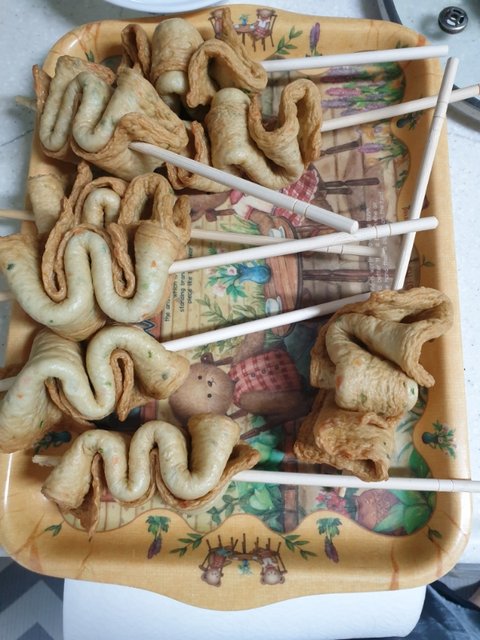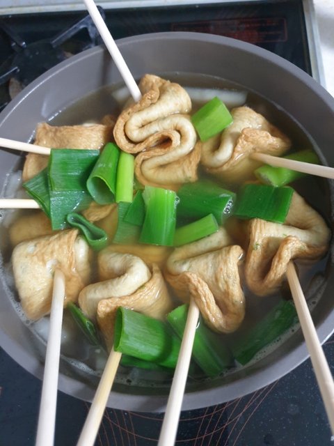 나무 젓가락에 사각 어묵 꽂아서 애들 점심으로 먹으라고 했어요.