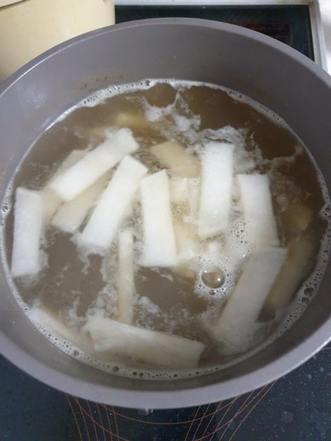 육수랑 무를 같이 넣어야 국물이 시원해요.
