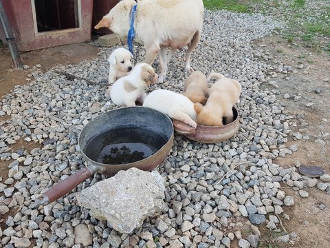 #논산 입니다.개장수에게 팔려갈 아이들이라고 합니다.어미가 최근에 새끼까지 5마리나 낳았는데 이 아이들은 축복받은 삶으로 태어나지 못했습니다. 제발 어미와 새끼 5마리좀 구해주세요.어미와 새끼들 입양 구조자님 애타게 기다립니다. 문의 010-8909-0312 #상게확