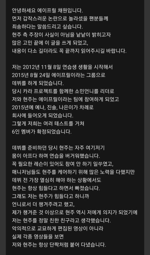 에이프릴 채원도 글 올림