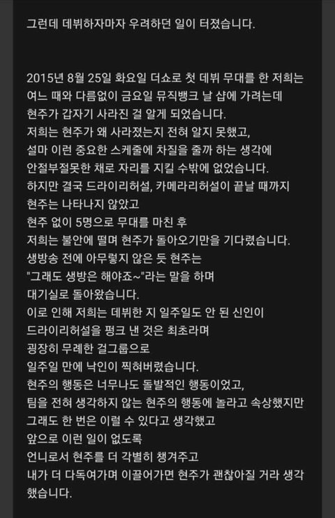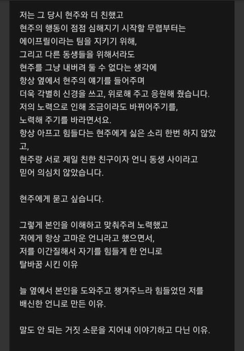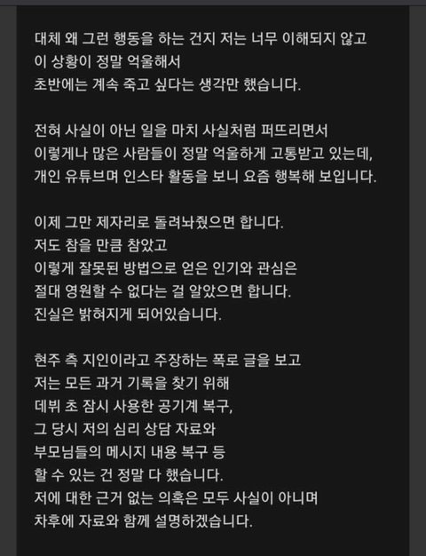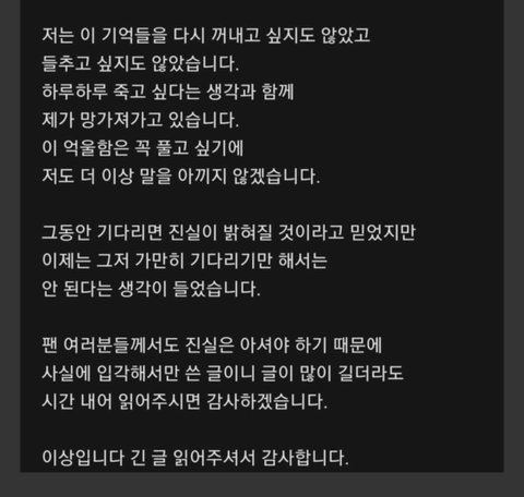다른멤버들은 얼레벌레 써서 솔직히 잘 안 믿겼는데 얘 글은 좀 진실돼보야서 잘 모르겟다… 걍 신경 끌래