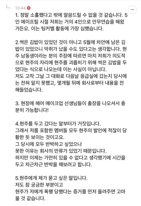 지금까지 솔직히 에이프릴 깠거든? 근데 나 포함 사람들이 너무 프레임을 씌운 것 같음 ;; 현주도 앞뒤 말 안 맞는 게 있는데… 흠