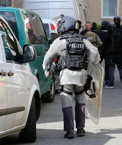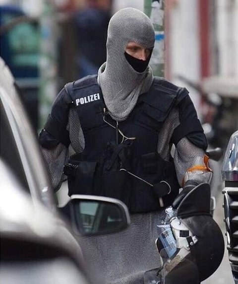 체인 메일 이라는 방검복 입니다. 마치 중세시대 기사 갑옷을 연상케 하네요. 난민들이 칼 및 흉기로 난동 부리고 위협을 가해서 독일 경찰 보호 차원에서 저렇게 착용 한거래요.