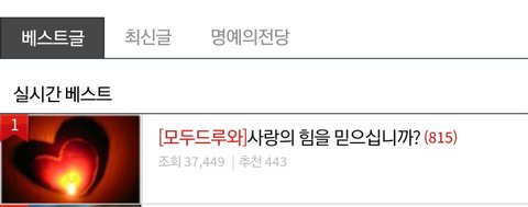 앱은 안써서 모르겠는데 웹으로 ㅇㅌㅌ 들어가면 바로 젤위에뜸