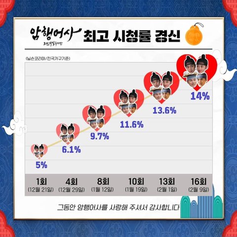 첫방 5퍼센트에서 막방14퍼센트라는 시청률 찍으면서 종영함