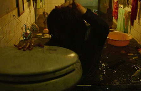 정말 기생충이 된 것 마냥 네 발로 계단을 기어오른다.