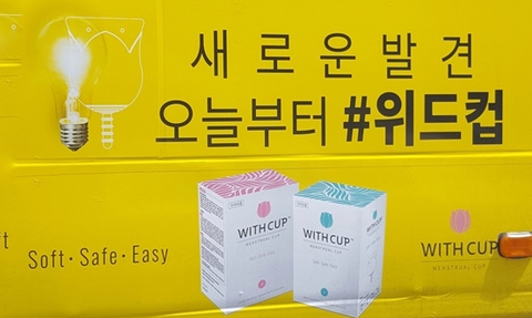 저 광고의 의미는 텍스트에도 써져 있듯이 위드컵은 생리대의 새로운 발견이다. 라는 의미임.