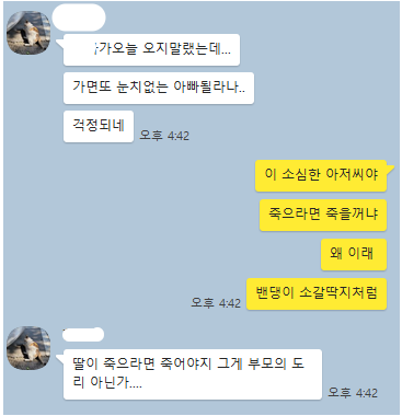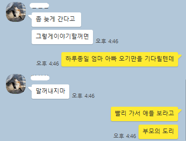 그래서 애들 보러 빨리 오라 했더니 그렇게 이야기할꺼면 말 꺼내지 말라네요.