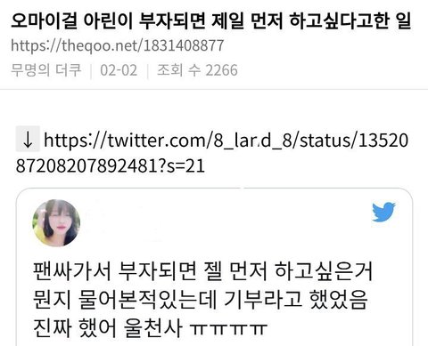 진짜 미라클들은 알지.... 아린이 진짜 묵묵히 노력 많이 하는 사람인거.. 예전에 스페셜엠씨하는게 떨려서 청심환 꾸역꾸역 먹던 아린이였는데 이제 어엿하게 은행장하는거 너무 뿌듯함ㅠㅠㅠ 아린이가 선천적으로 연예인으로서의 순발력이나 끼가 부족한데 메꾸러고 열심히 하는데 대중들은 모르는 것 같아서 아쉬움ㅠㅠ 너무 밉게 보지만 말고 예쁘게 봐줬으면