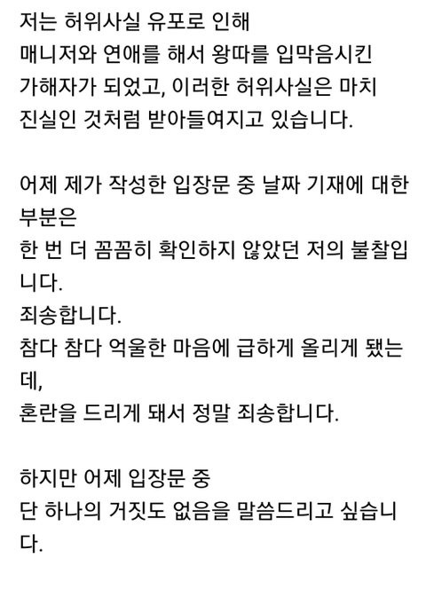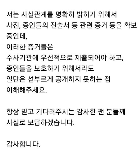 허위사실이나 추측성 의혹 확산에 법적 대응한다는 글이랑 같이 올라온 글