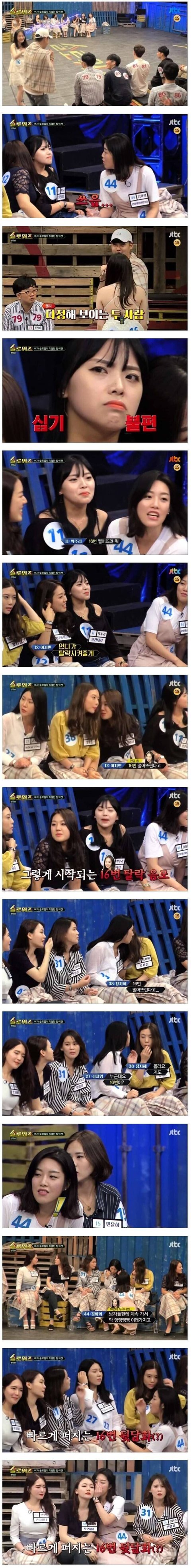 근데 이건 여자들 한정으로 볼게아니라 우리나라 사람들 대부분이 이러지않나? 예를 들면 수업 끝났는데 혼자 손들고 질문한다던가, 다같이 식사할때 혼자 속도 느리면 괜히 눈치보인다던가 등등 아직은 개인보단 집단이 더 먼저라고 생각하는 경향이 있음. 근데 이 경우는 여자 라는 차별적 시선으로 바라보다보니 그냥 다 싸잡아서 여자들은 문제야 로 보게 되는거 같은데, 사실 쟤네도 무리에서 저 사람이 혼자 튀는 행동을 하니까 당연히 왜저러나 싶겠지. 거기다 커플 성사라는 집단의 공통적 이익 앞에 서바이벌이라는 규칙까지 있으니 무리에서 떨어져 나가는 사람은 배척 당할 수밖에 없음.