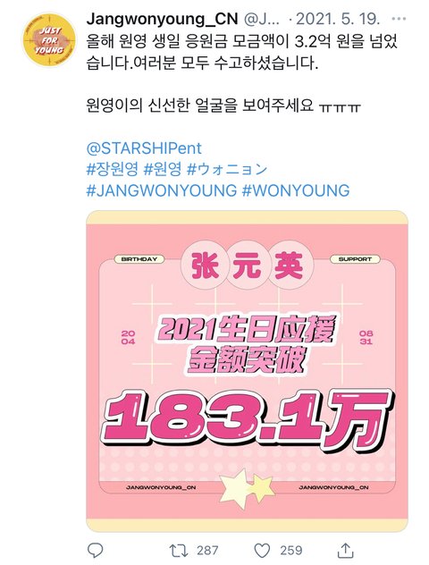 장원영 생일모금 3.2억원 넘었대