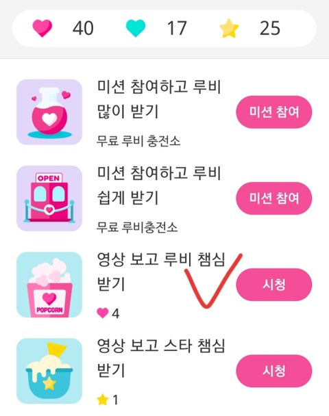 3. 무료 충전(미션,영상 시청) or 챔심 구매