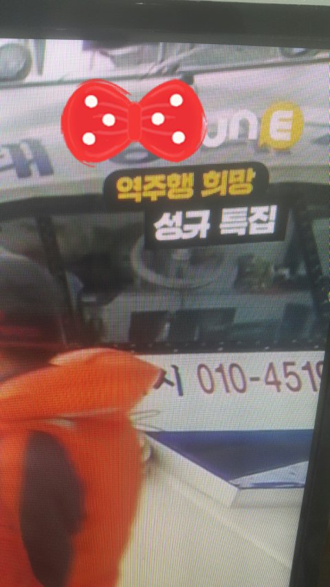 울인슾들이 역주행희망하고 있는걸 방송국에서도 아는건가 ㅋㅋ 친구가 어제 낮에 티비보다 러어닝맨 성규 특집한다며 사진찍어 보내줬어 ㅋㅋ 워낙 출연자가 많던 회차라 규 기다리다 찍기 넘 힘들었다면서도 열심히 찍었다고하는데 고마웠어