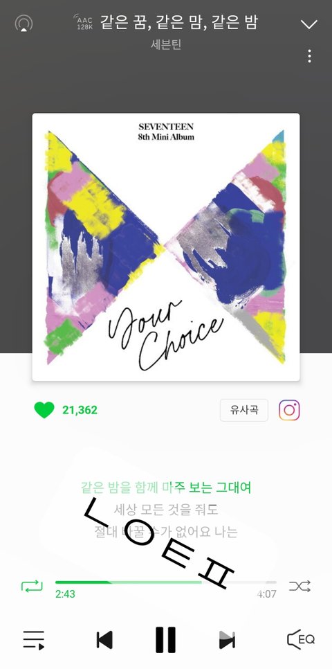 → 노래 화면 왼쪽 밑 반복재생 안 누름