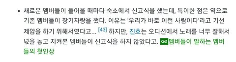 짹에서 봣는데 ㅋㅋㅋㅋㅋㅋㅋㅋㅋㅋㅋㅋㅋㅋ진호는 신고식 안한 유일한 멤인가봐…역시 슴더발 조지노