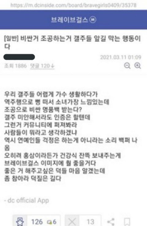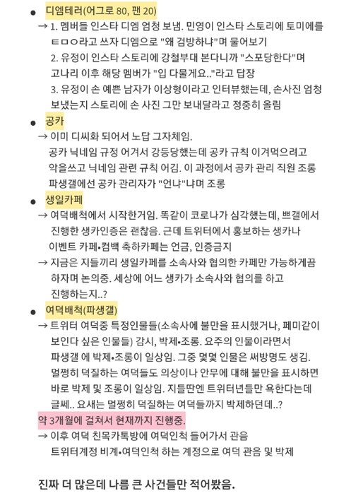 나 여팬인데 소신발언할게. 이런 제목으로 낚시하고 들어가보면 멤버들 노출 심한 사진 올리고 메퇘지 퇴치 성공!! 이런 글 한두개 아님 ;;;
