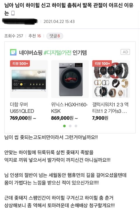 브걸 노래 중에 하이힐 신고 콩콩 뛰는 안무가 있는데 팬이 그거 보고 발 아프겠다 하면 오는 반응 ㅋㅋ