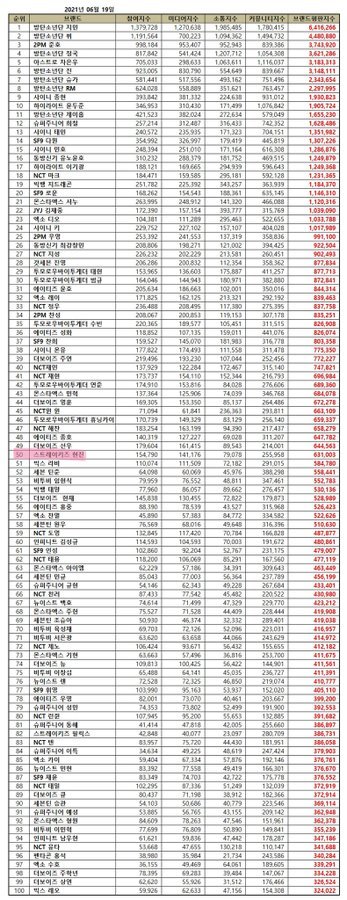 6월은 남아이돌 중 50위!!!