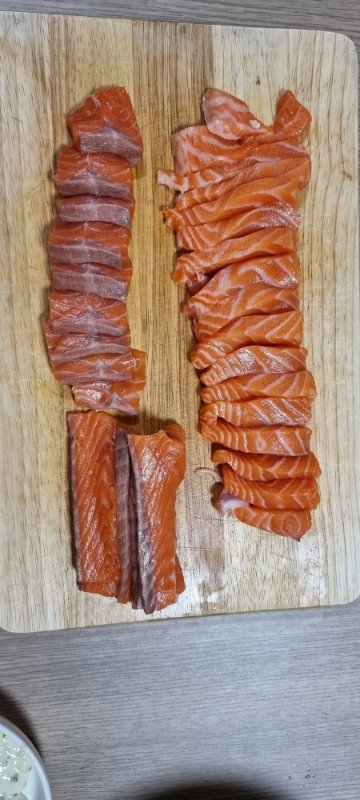 아래는 손질 과정입니다. 자르는방식이 여러개 있는데 저는 저렇게 합니다. 꼬리는 구이용으로 따로 빼고, 오늘 받은거라 뱃살부터 먹습니다. 제일 좋은 부위니까요.
