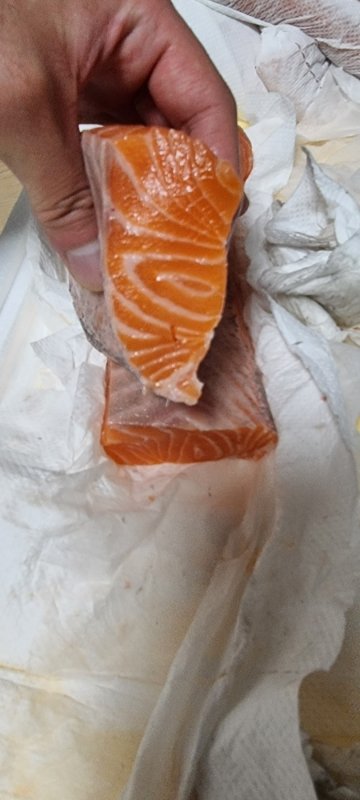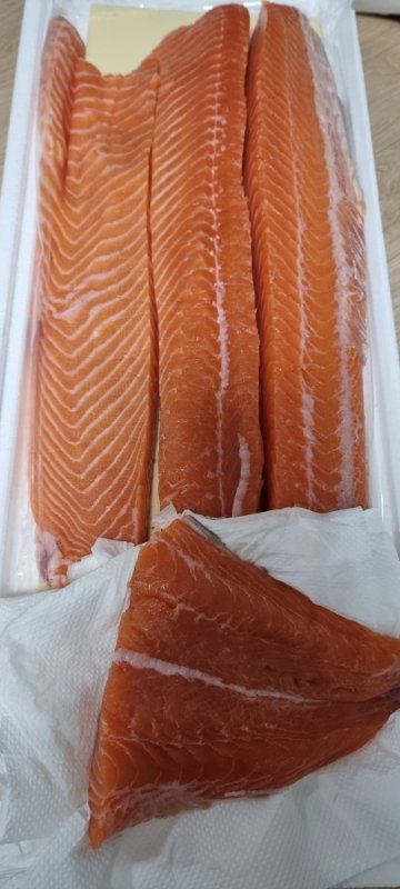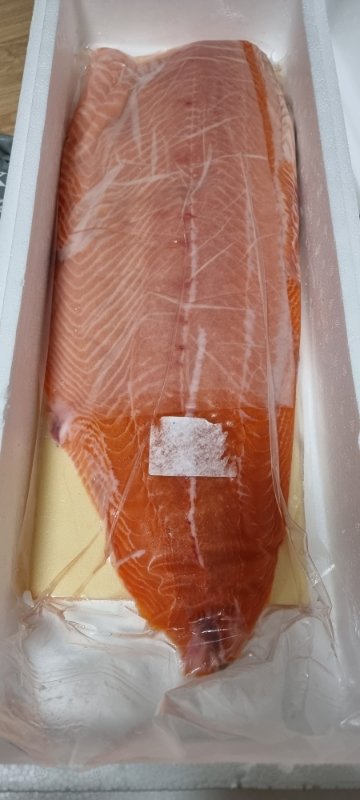 2키로가 넘는 연어 반마리 입니다.