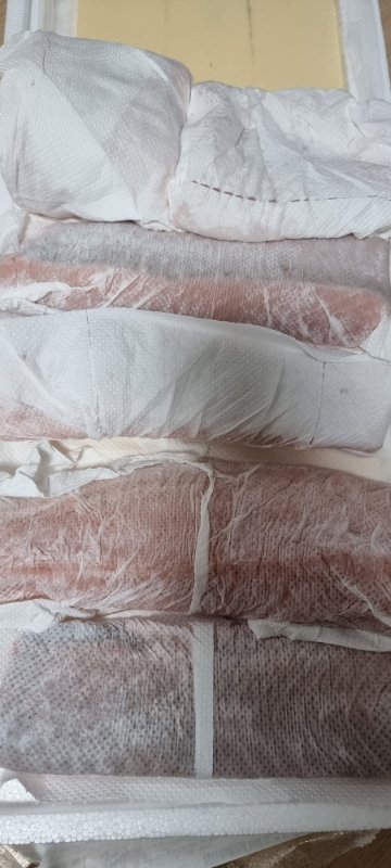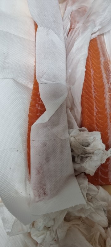 키친타월로 앞뒤를 깨끗이 닦아 다시 키친타월로 감싸 놓습니다. 양이 많아 다 못먹을 시 냉장 보관이며 매일 키친타월을 바꿔주면 3일정도는 비린내 없이 냉장으로 먹을 수 있습니다.