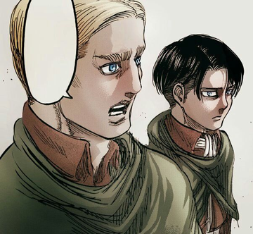 (리바이가 짐거를 죽이겠다고 약속하자 엘빈이 쓸쓸한 웃음을 지어 보여줌)