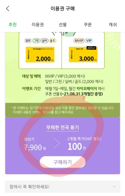 현재 멜.론에서 스트리밍 이용권 100원 이벤트를 하고있어