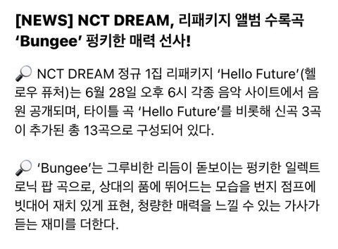 그루비한 리듬이 돋보이는 펑키한 일렉트 로닉 팝 곡상대의 품에 뛰어드는 모습을 번지 점프에 빗대어 재치 있게 표현청량한 매력을 느낄 수 있는 가사