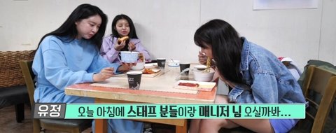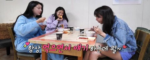 셋다 머리 부스스해가지고 쌩얼에 밥먹으면서