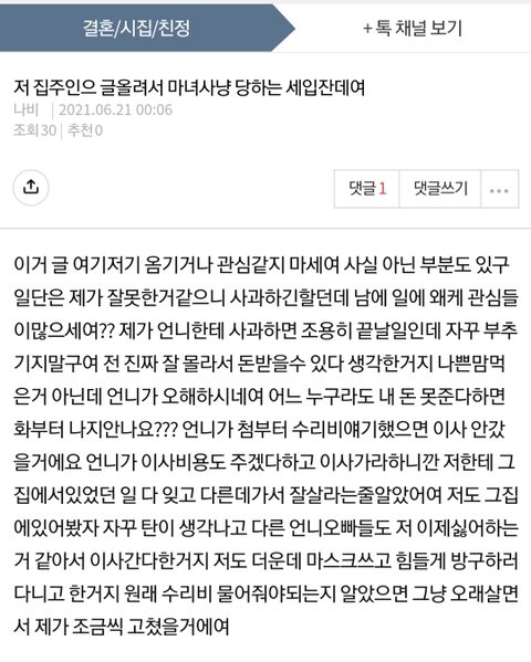 (원본지킴) 저 집주인이 글올려서 마녀사냥 당하는 세입잔데여